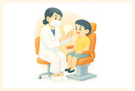 歯科医院は見慣れない器具や設備が多く、初めての場所に緊張してしまうお子さんは少なくありません。当院では、いきなり治療を始めるのではなく、まずは診療室の雰囲気に慣れてもらうことからスタートします。チェアに座る練習をしたり、器具を見てもらったり、段階的に治療を進めることで、「歯医者さんは怖くない!」と思ってもらえるようサポートします。