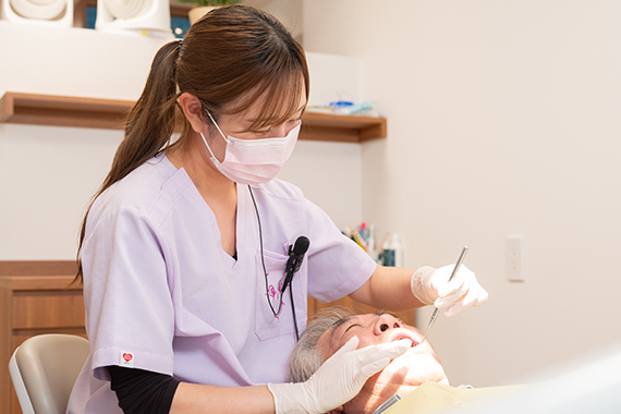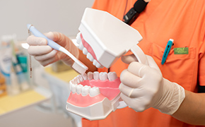歯周病の改善・予防には、毎日のセルフケアが欠かせません。当院では、患者さん一人ひとりの歯並びやみがき癖を確認し、適切なブラッシング方法を丁寧にお伝えします。道具の選び方や動かし方まで細かくアドバイスすることで、プラークの除去率を高め、治療の効果を維持します。