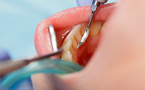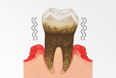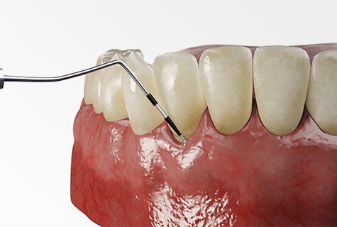 歯周ポケット内の炎症した歯肉や歯石、汚染したセメント質を徹底的に除去し、殺菌・消毒します。その後、歯根面をなめらかにし、歯肉の付着を促します。