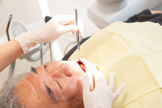 専用の器具を使い、歯に付着した歯石や歯垢を取り除く処置です。歯石は歯みがきでは落とせず、放置すると歯周病が進行する原因になるため、歯科医院で処置を受けることが大切です。定期的にスケーリングを受けることで、むし歯や歯周病の予防効果を高められます。